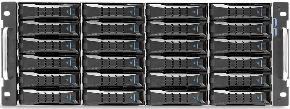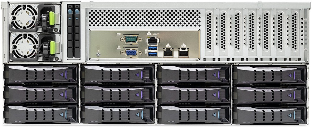 - Fronteinschübe: 24x SAS/SATA; Rear-Einschübe: 8x NVMe/SAS/SATA + 4x SAS/SATA