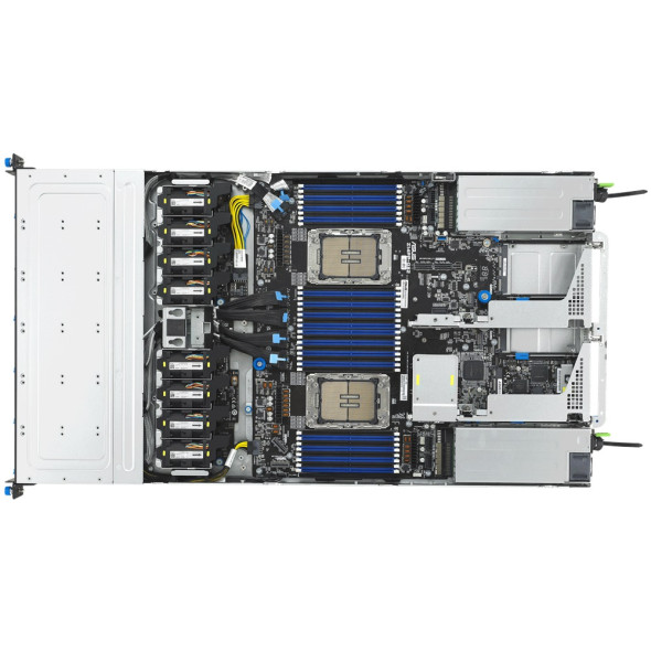 - Optimierte Luftkühlungslösung: Verfügt über ein Hot-Swap-Lüfterbalken-Design für verbesserte Wartung und optimierten Luftstrom, kombiniert mit einer beidseitigen Netzteil-Platzierung zur Wärmetrennung, was ein effizientes Thermomanagement bis zu 350 Watt TDP pro CPU sicherstellt.