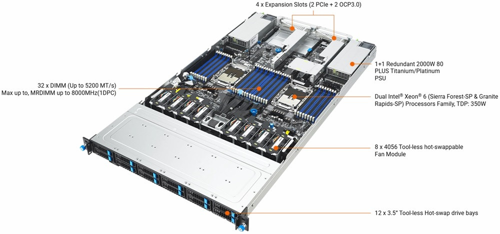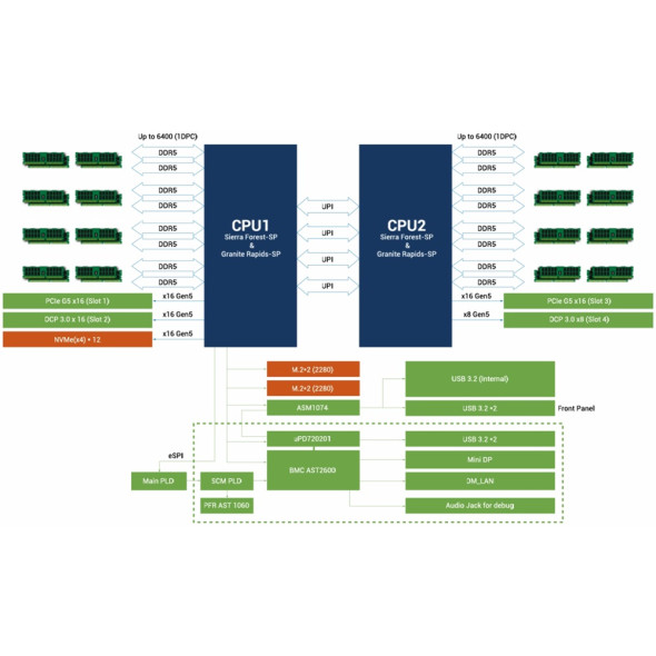 - Spitzenleistung für Multitasking-Anwendungen: Angetrieben von 2x Intel® Xeon® 6 Prozessoren und bis zu 4.0 TB DDR5-6400 Arbeitsspeicher auf 32 DIMMs bietet das System leistungsstarke Rechenkapazitäten und ermöglicht effizientes Multitasking sowie die Verarbeitung komplexer Workloads.