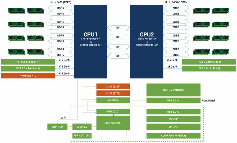 CPU Support | Intel Xeon 6500, Intel Xeon 6700 |