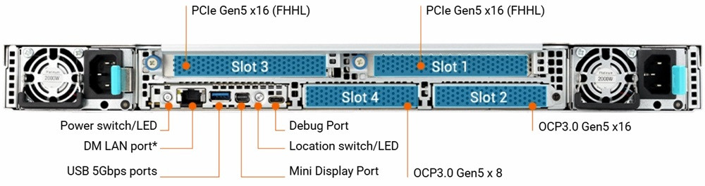 PCI-Express Slots | 2x PCIe 5.0 (x16), 1x PCIe 5.0 (x8), 1x OCP 3.0 Mezzanine (x16 Gen 5.0) |