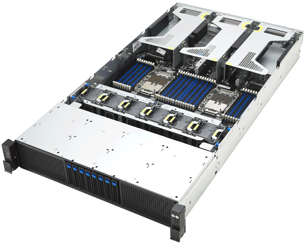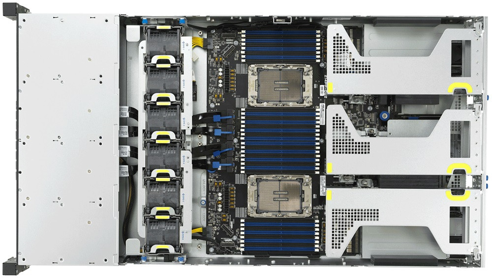 - Optimierte Luftkühlungslösung: Verfügt über ein Hot-Swap-Lüfterleisten-Design für vereinfachte Wartung und optimierten Luftstrom, kombiniert mit einer beidseitigen Platzierung der Netzteile zur Wärmeabtrennung, und gewährleistet ein effizientes Thermomanagement bis zu einer TDP von 350 W.