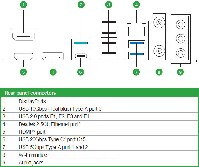 - High Performance Networking Integriertes Wi-Fi 6E (802.11ax) mit ASUS WiFi Q-Antenne und Realtek 2.5Gb Ethernet